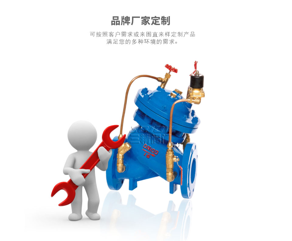 2、操作方便,无需为阀门另配电控系统,阀门随水泵的开启与停止自动并按顺序完成控制功能。通过设定调节阀开度可得到合适的控制参数。