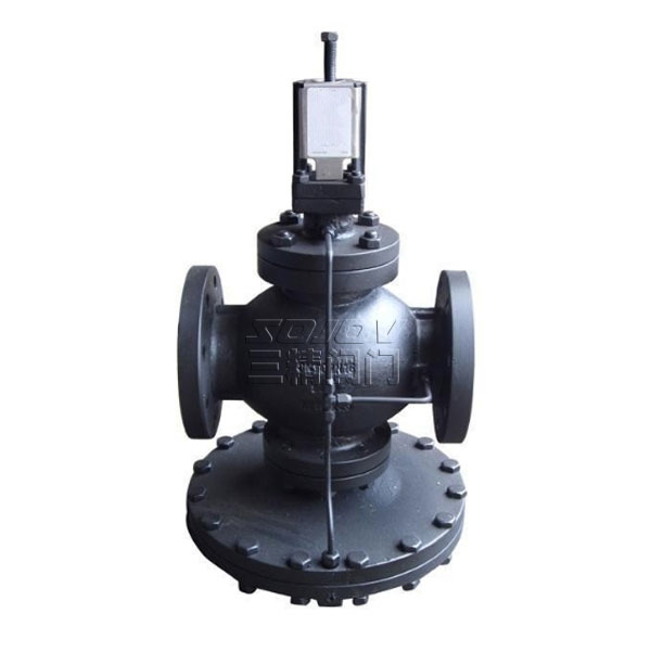 减压阀属于先导活塞式减压阀。由主阀和导阀两部分组成。主阀主要由阀座、主阀盘、活塞、弹簧等零件组成。导阀主要由阀座、阀瓣、膜片、弹簧、调节弹簧等零件组成。本产品在普通减压阀基础上作了很大改进,加大了活塞面积,改变了节流结构。改变了密封形式,加大了过流面积等等,从而在提高灵敏度、流量、寿命等方面大大改善了性能。 高灵敏度大流量蒸汽减压阀主要用于蒸汽管路,适用于流量大流量变化大,进口压力变化大的蒸汽管路。